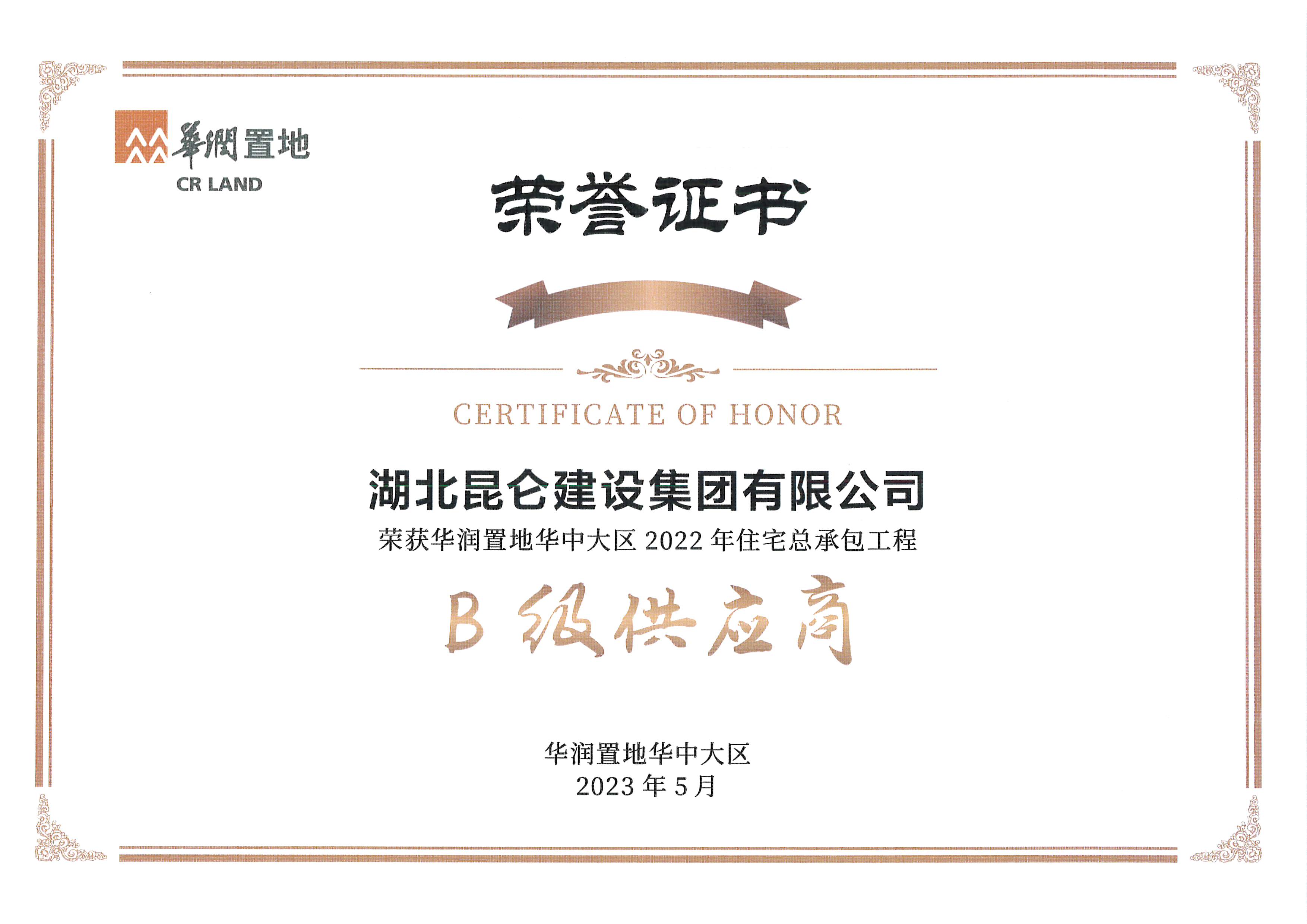 2022年華潤置地華中大區住宅工程(B級供應商)...